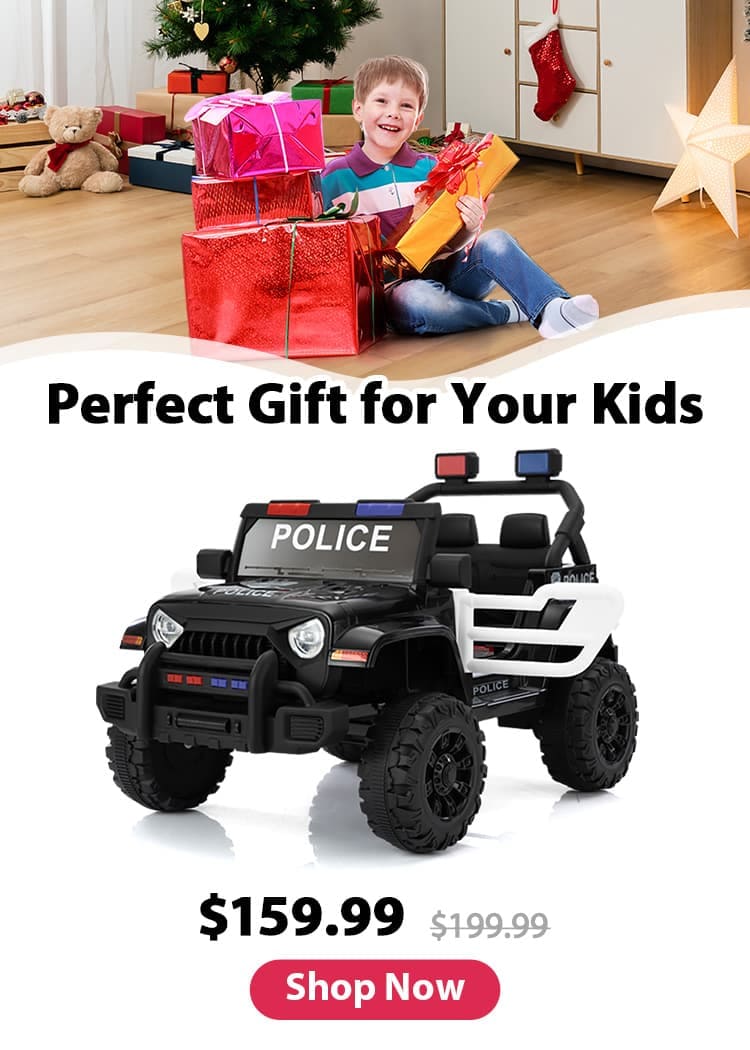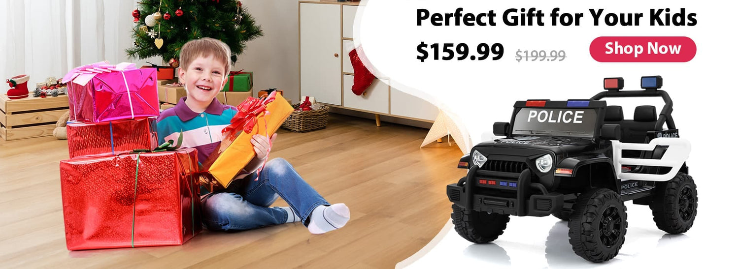 We offer kids’ ride-on cars, UTVs, motorcycles, police cars, airplanes, and more — plus fun toys like slides, kitchen playsets, block tables, and scooter suitcases.