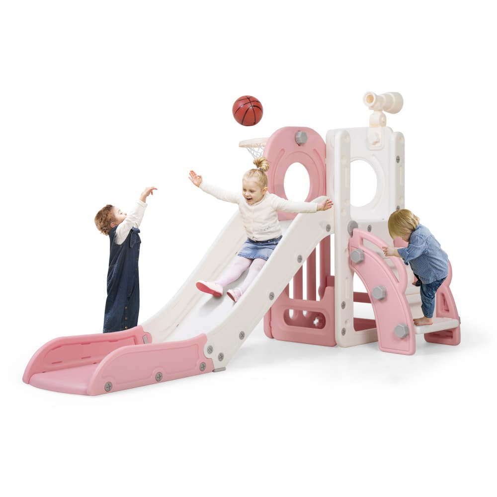 TOBBI & NYEEKOY 4-in-1 Toddler Slide and Swing Playset with Hoop